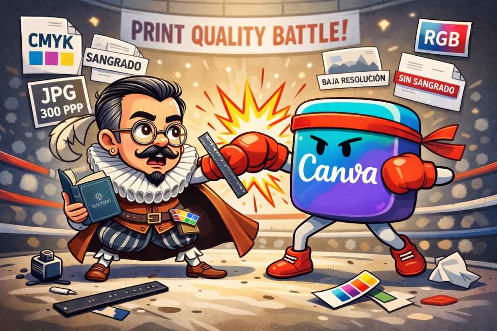 «Te paso el diseño que hice en Canva»: Aquí tenemos que respirar… como hemos comentado, estos archivos no cumplen con los requisitos necesarios para una imprenta.