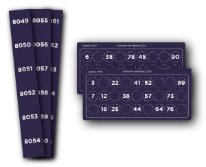 Bingo, rifas, sorteos o loterías, lo que mejor se adapte a tu público, impreso en alta calidad y numerados, servidos en un único bloc, grapado o encolado para poder entregarlos fácilmente.