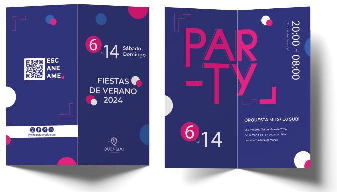 En Gráficas Quevedo queremos que disfrutes de todas las fiestas, por eso os ayudaremos a distribuir todos los elementos, desde los textos de presentación, imágenes, festejos y toda la publicidad.